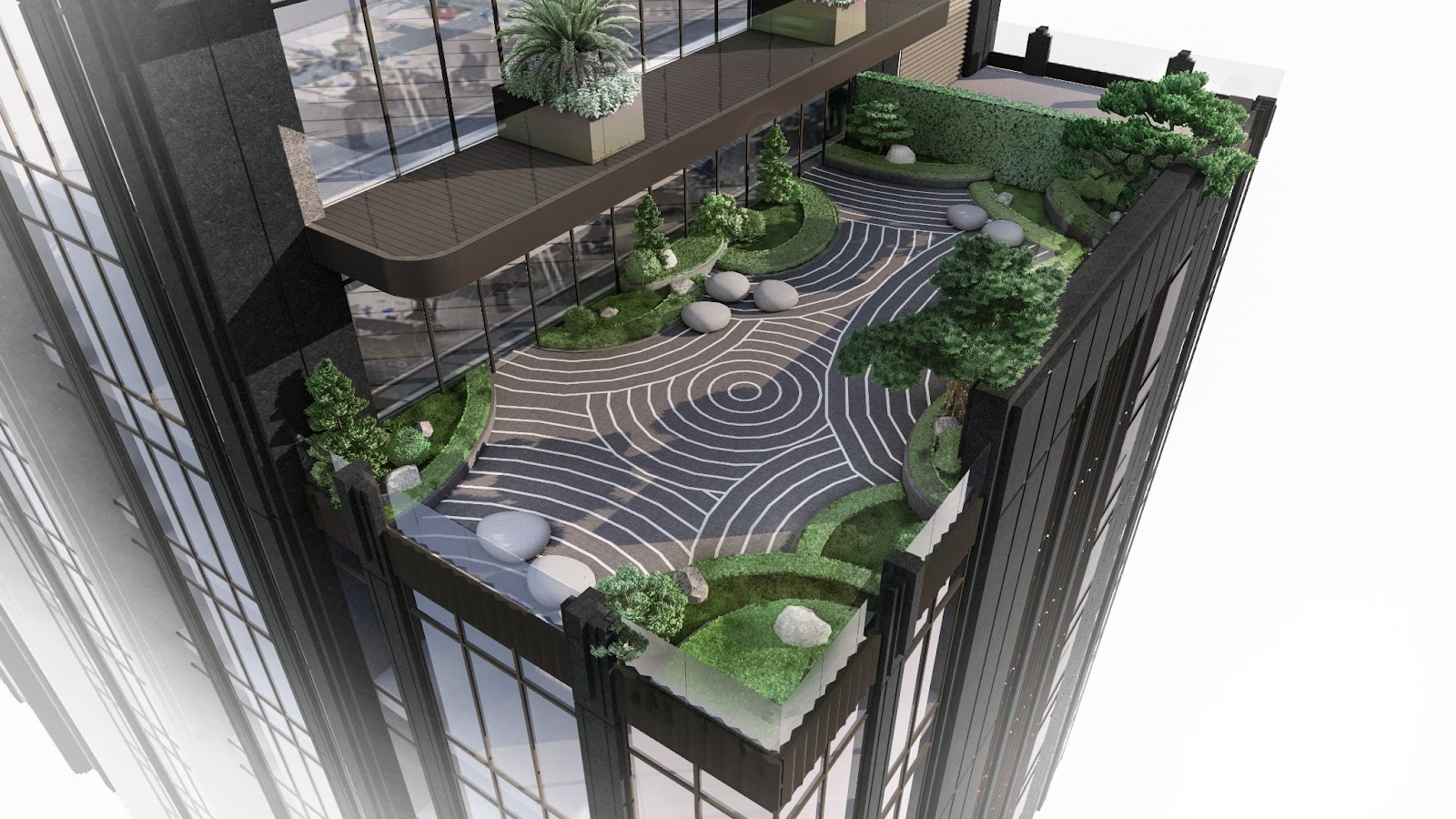 Green landscaping and harmonious environments for a healthy, balanced workplace